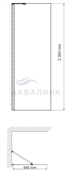 Перегородка душевая Aquatek Walk in AQ.WISL.1GM раздвижная с держателем, профиль оружейная сталь