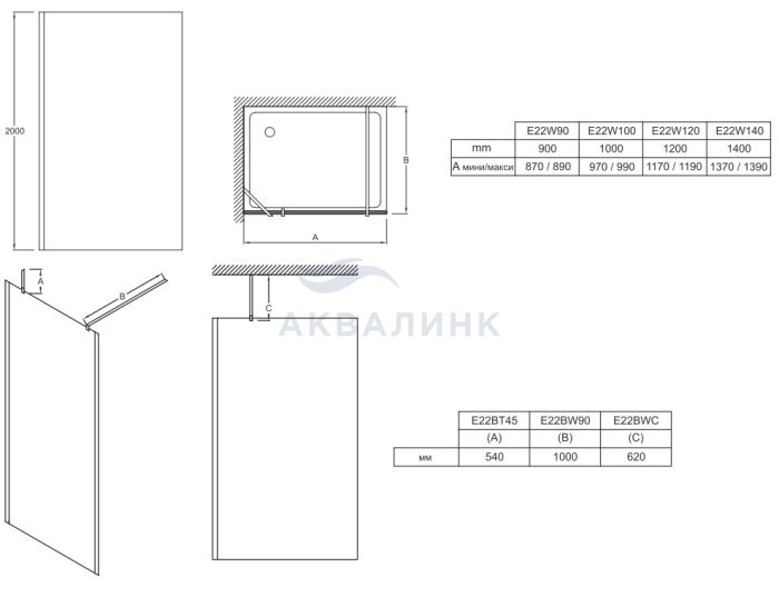 Перегородка душевая Aquatek Walk in AQ.WISL.1GM раздвижная с держателем, профиль оружейная сталь