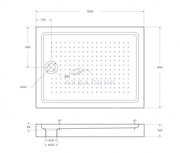 Поддон акриловый, металлический каркас, регулируемые ножки сифон (декоративная крышка в исполнении хром)