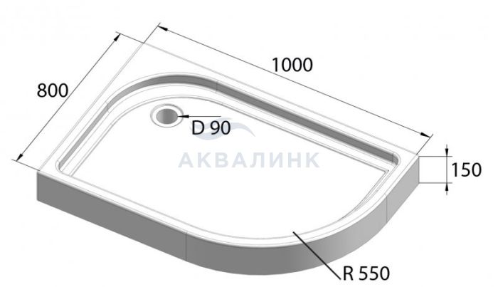 "Поддон акриловый, прямоугольный асиметричный Комплект: * металлический каркас; * регулируемые ножки; * сифон.