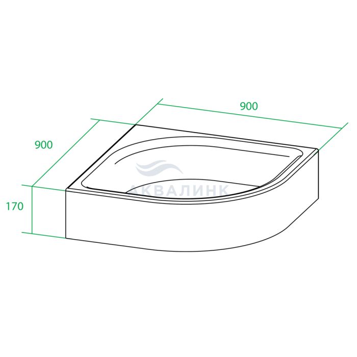 Поддон душевой, полукр. 90х90, 170мм, P29W "Полукруглый, ABS-акриловый, 90*90*17 см, съемный экран поддона, бортик, препятствующий переливу воды, сифон с гидрозатвором 115 мм в передней части поддона.
