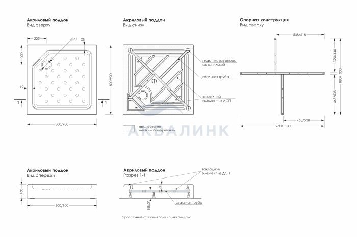 Поддон душевой Метакам Universal Black N квадрат h-160мм