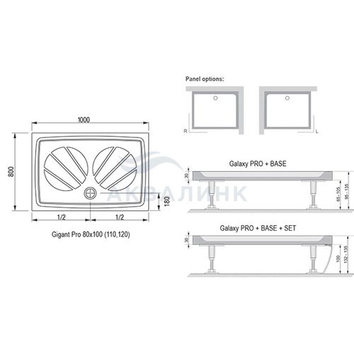 Прямоугольный душевой поддон из литого мрамора, экстраплоский. Размер: 120х80 см. В модификации: Gigant Pro – с противоскользящей поверхностью.