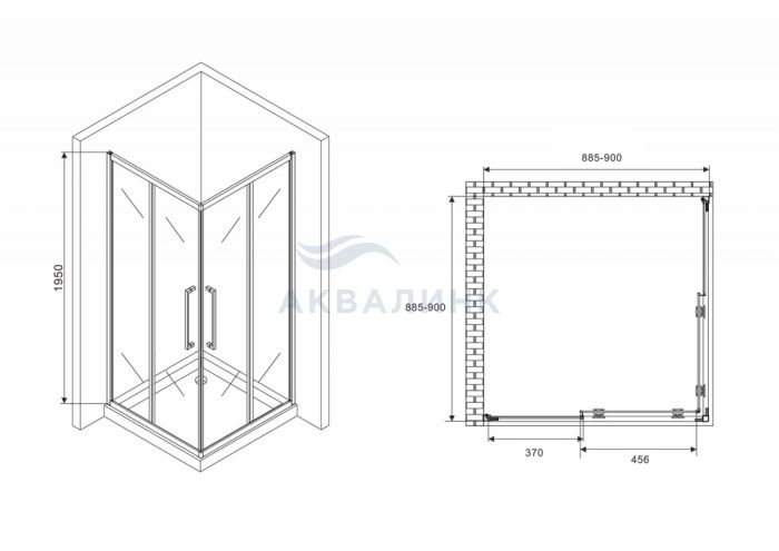 Уголок душевой Abber Schwarzer Diamant AG02BMH квадратный, черный профиль, матовый, вход с угла