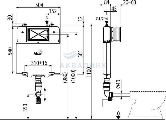 Бачок скрытого монтажа Alcadrain AM112 для замуровывания в стену