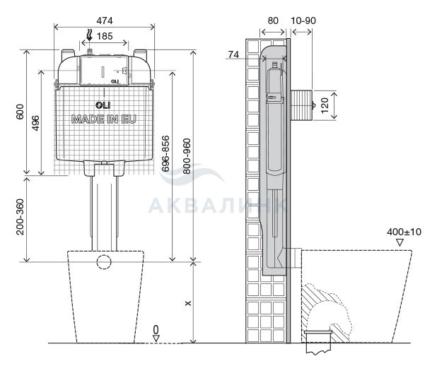 Бачок скрытого монтажа OLI 74 Plus пневматика