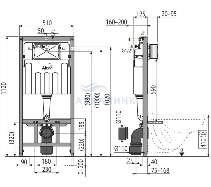 277912 система инстал. подвес. унитаза с мет.рамой Sadromodul AM101/1120 3 в 1 кнопка M70 белая ALCAPLAST AM101/1120-3:1RU M70-0001