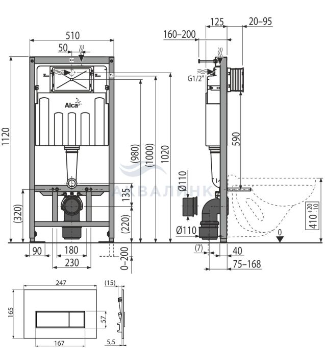 AM101/1120-4:1 RU M571-0001 комплект системы инсталляции подвесного унитаза Sadromodul AM101/1120 4 в 1 кн. белая ALCAPLAST