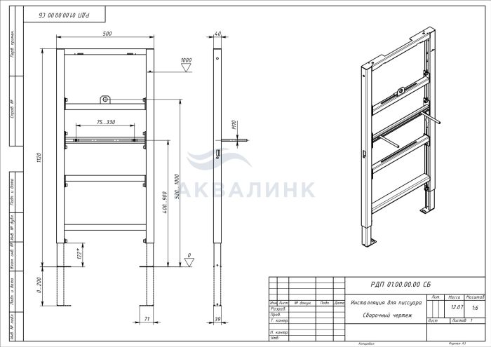 Инсталляция Aquatek для подвесного писсуара, без крепежа к стене