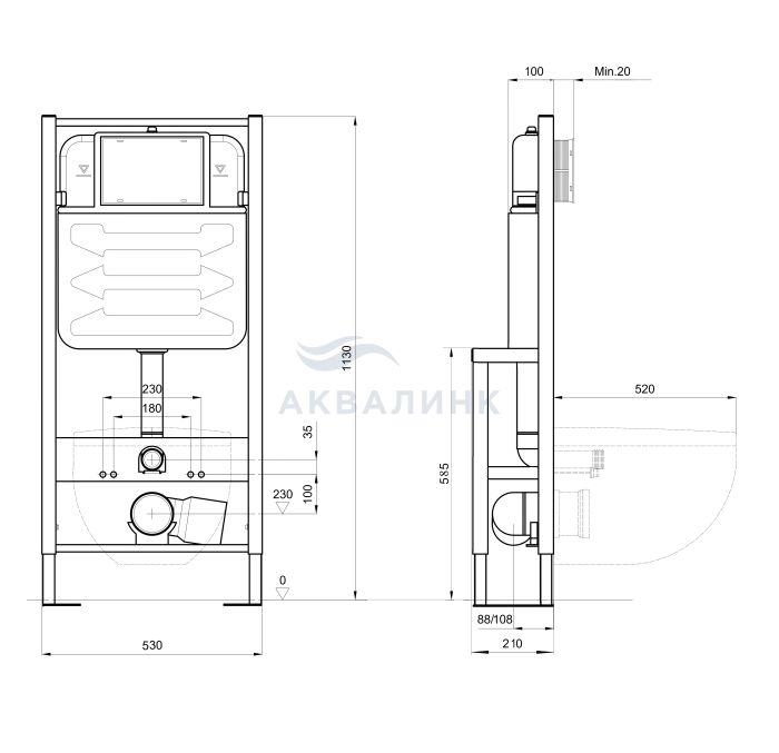 Инсталляция Aquatek для подвесного унитаза, отдельностоящая