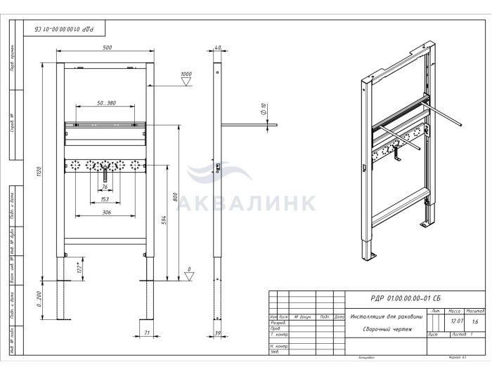 Инсталляция Aquatek для подвесной раковины, без крепежа к стене