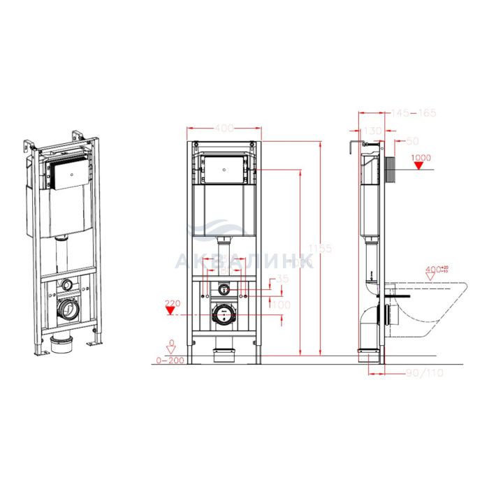 Инсталляция Azario AZ-H401A для подвесного унитаза, узкая