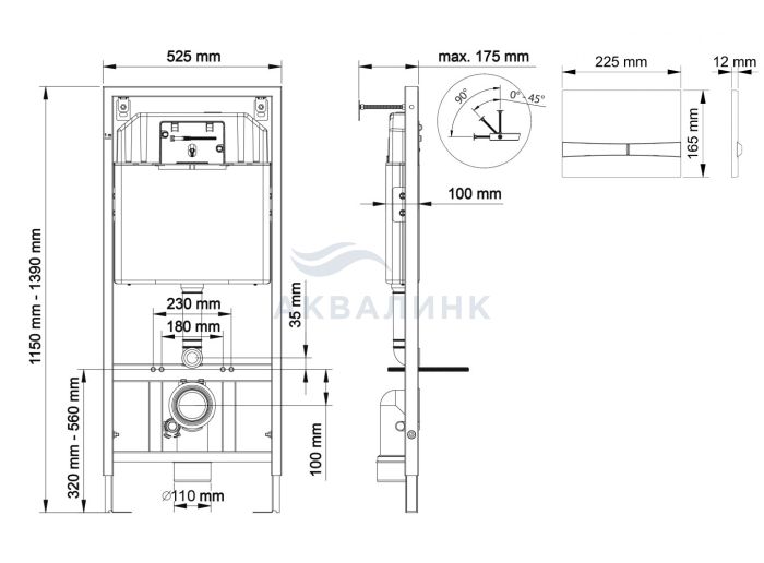 Рамный блок, смывной бачок, арматура, монтажная рамка для клавиши, шпильки для унитаза, насадки для подключения к канализационным трубам и подвесному унитазу