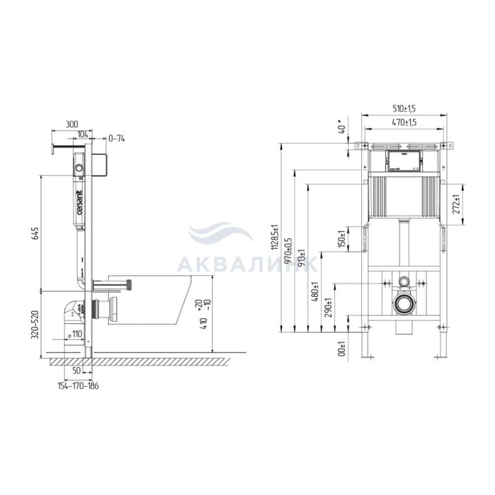 27460 комплект CITY SMART DPL EO slim Cersanit инсталляции AQUA 50 PRIME P кнопка ACCENTO SQUARE хром LP 69326
