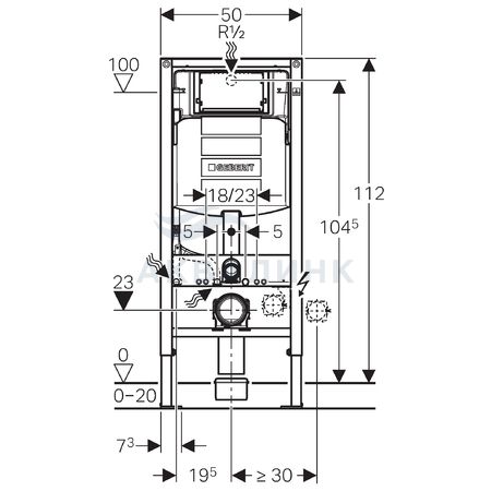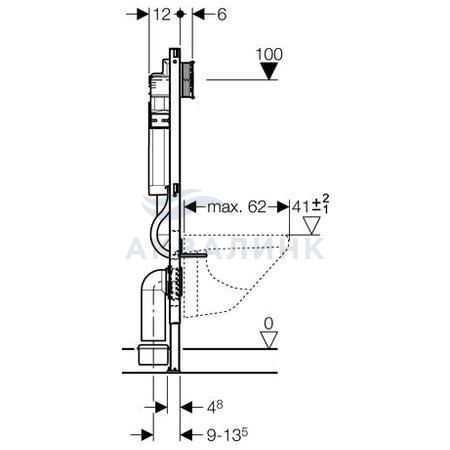 111.300.00.5 Инсталляция Geberit Duofix для подвесного унитаза, 112 см, со смывным бачком скрытого монтажа Sigma 12 см, без крепежа к стене