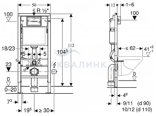 Инсталляция GEBERIT Duofix 458.118.21.2 c клавишей Delta20 хром глянцевый