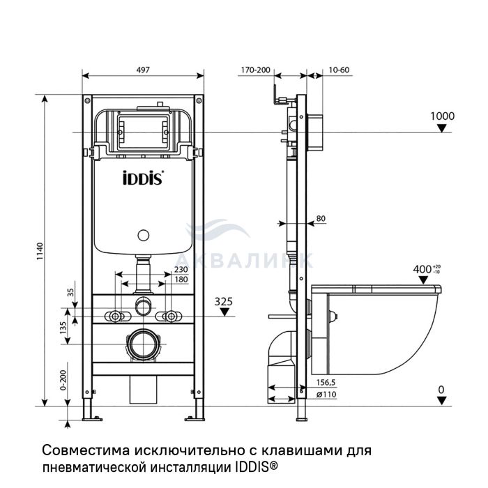 Инсталляция IDDIS Profix Air PRA0000i32 для подвесного унитаза, пневматическая