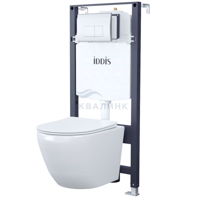 Инсталляция IDDIS Profix BASB010i73 с безободковым унитазом Blanco с микролифтом кнопка Optima Home 010 хром