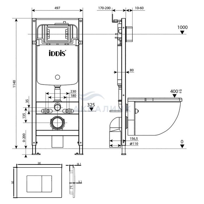 Инсталляция IDDIS Profix BASBLD0i73 с безободковым унитазом Blanco с микролифтом кнопка Unifix 030 хром матовый
