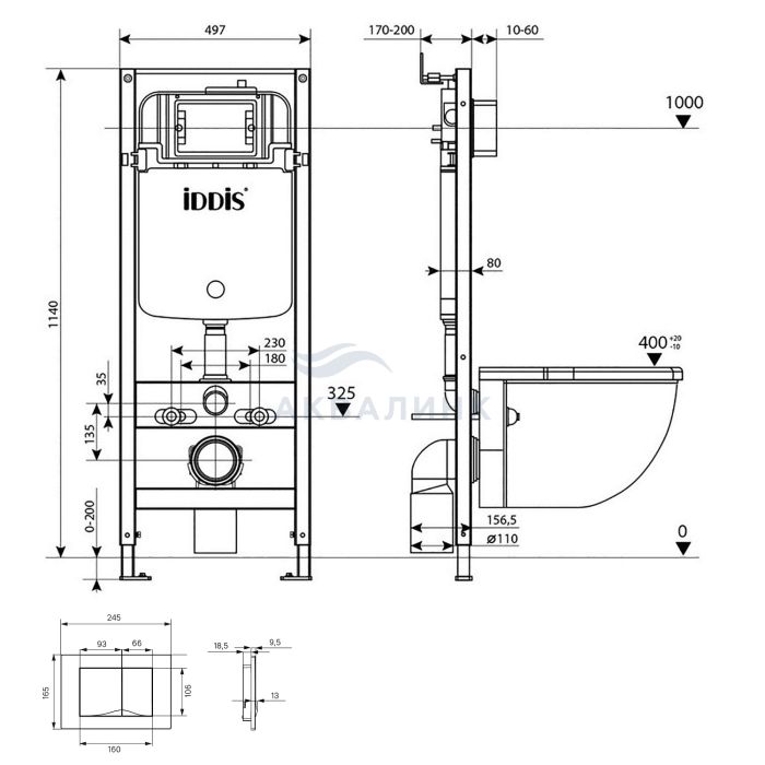 Инсталляция IDDIS Profix BASCAL0i73 с безободковым унитазом Calipso с микролифтом кнопка Unifix 005 хром