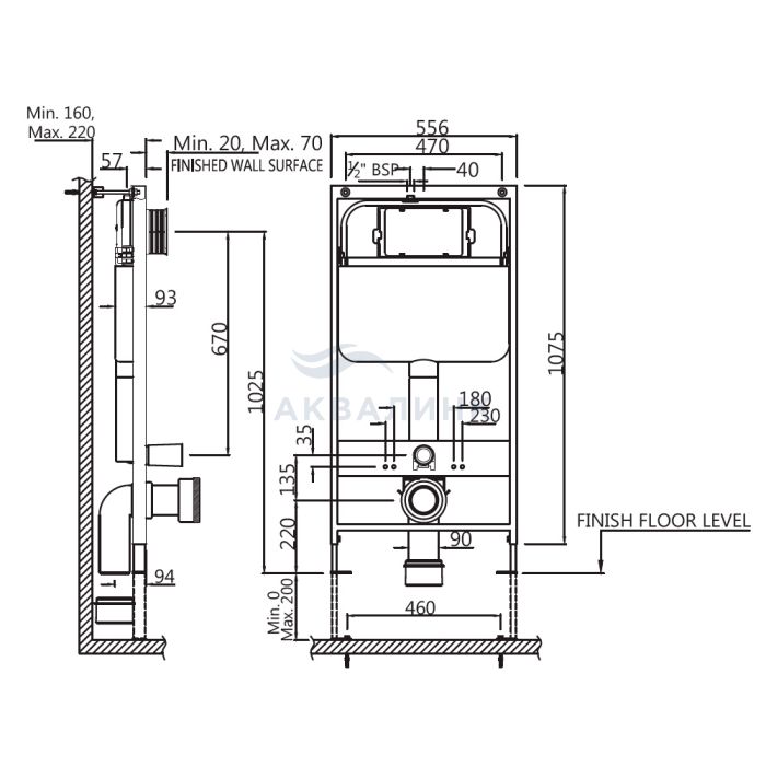 Инсталляция Azario AZ-H401A для подвесного унитаза, узкая