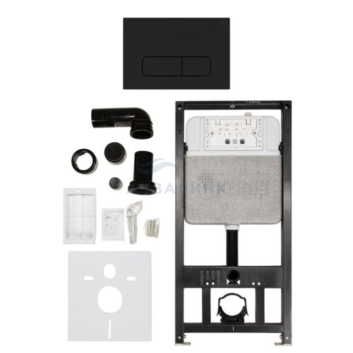Комплект инсталляции NOVAFLOW с панелью смыва ELLIPSE 001 с овальн. кл., пл., черн., мат