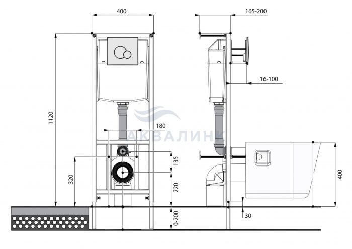 Инсталляция IDDIS Профикс (Profix) BASCAL0i73 с безободковым унитазом Калипсо (Calipso) с микролифтом, кнопка хром