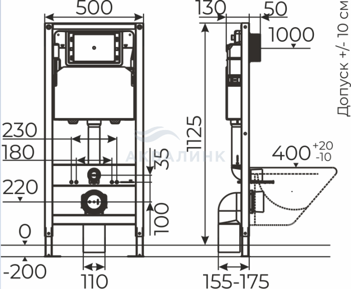 рама с бачком и арматурой, шумоизоляция, комплект крепежа