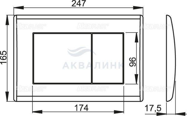 M278 Кнопка управления для скрытых систем инсталляции, черный-мат Двойной смыв, механический принцип действия Совместимость со всеми скрытыми системами инсталляции Alcaplast Материал: пластик Поверхностная отделка: хром матовый
