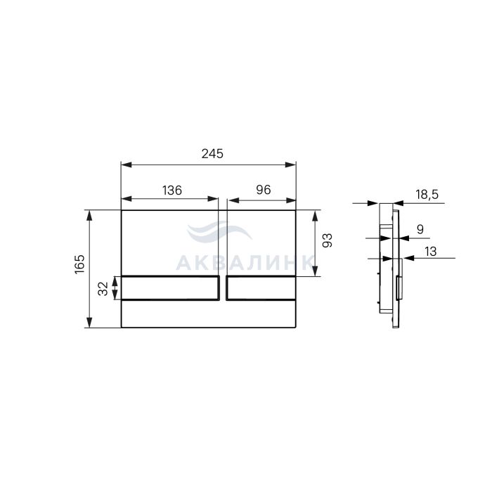 Универсальная клавиша смыва из пластика. Цвет: матовый черный. Размер: 245х165х27,7 мм.