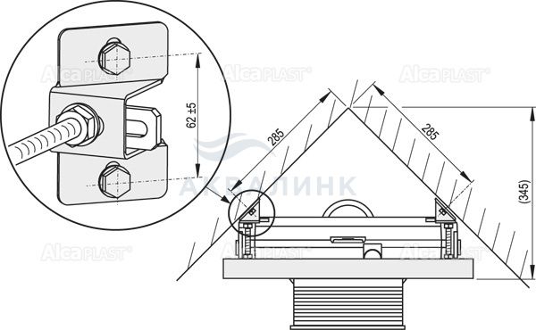 M918 АДАПТЕР ДЛЯ ЗАКРЕПЛЕНИЯ В УГОЛ Содержание комплекта Адаптер угловой – 2 шт. Монтажный комплект: шуруп Ø8×60 – 4 шт., дюбель Ø 12 – 4 шт., гайка М10 – 4 шт., прокладка – 4 шт.