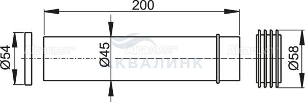 88751 прокладка+вывод+гофрированная прокладка 45*58*25 M901 ALCAPLAST Соединительный патрубок Ø45х200 мм с гофрированной манжетой Ø58 мм, для подключения подвесного унитаза к смывному бачку при установке на инсталляцию.