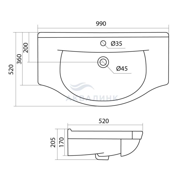 Раковина мебельная Акватон Рейн 80 белая отгружается только с тумбой 1A236101LH010