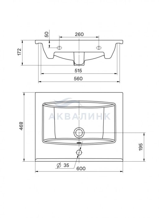 Раковина мебельная Акватон Рейн 60 белая отгружается только с тумбой