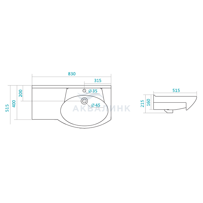 Раковина мебельная Santek Коралл-83 крыло слева 1.WH11.0.225