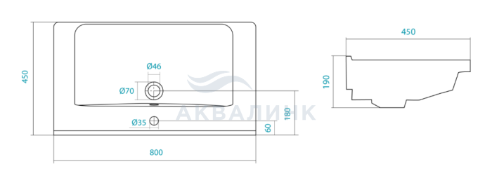 Раковина мебельная Акватон Рейн 80 белая отгружается только с тумбой 1A236101LH010
