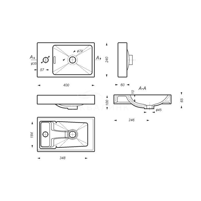 Раковина Sanita Luxe Quadro 60 мебельная