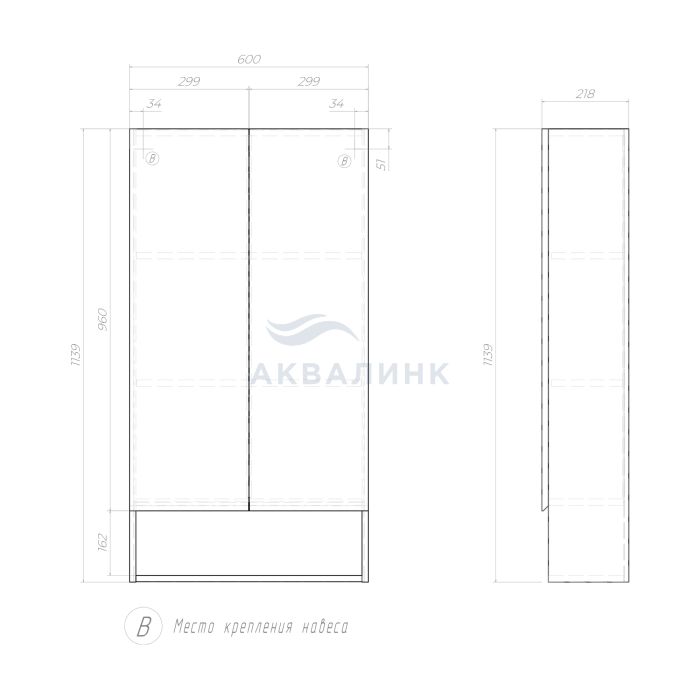 Шкаф Vigo Wing 60 с нишей белый подвесной