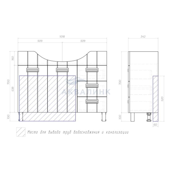Тумба Vigo Diana 1050-2-3 под раковину Стиль напольная
