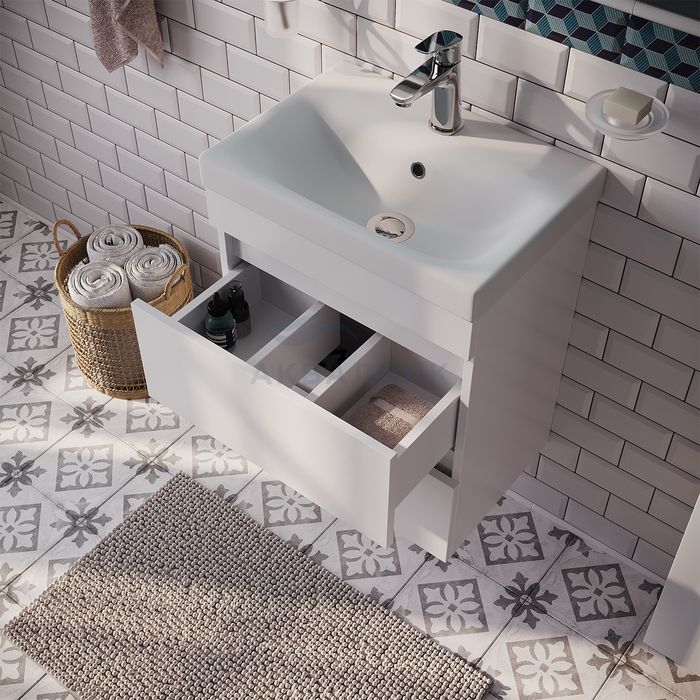 Тумба с раковиной Iddis Zodiac 50 подвесная с ящиками белая ZOD5CB0i95K