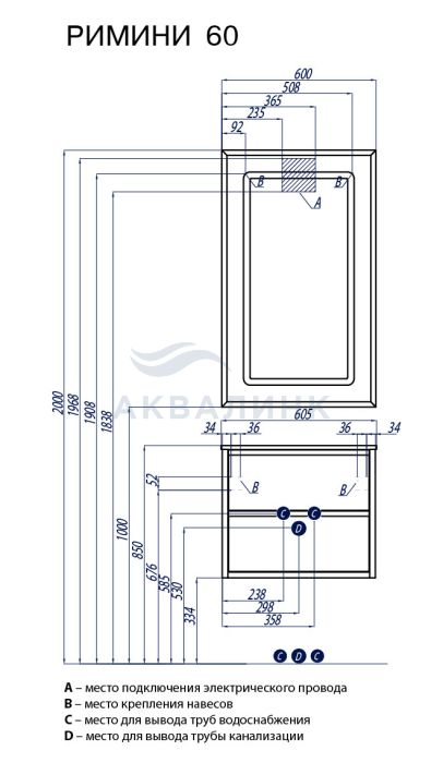 Зеркало, встроенный светодиодный светильник, сенсорный выключатель, система подогрева ANTI-STEAM