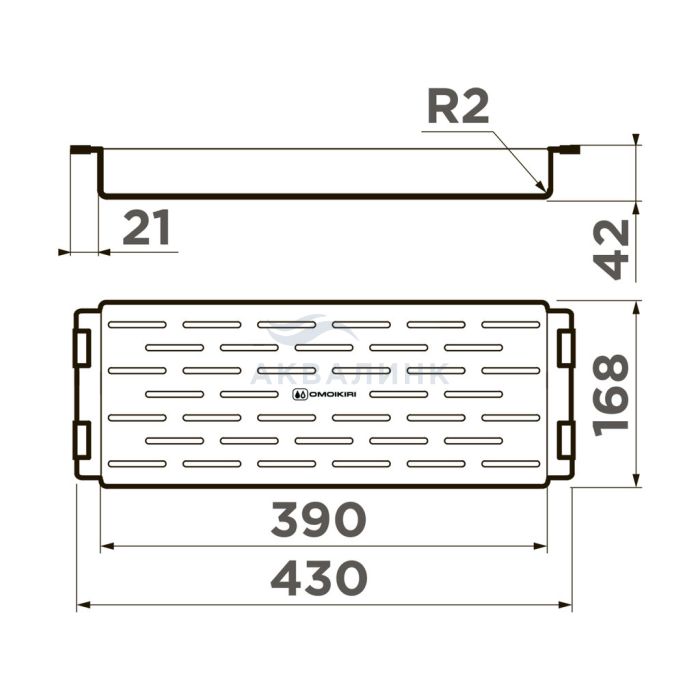 Коландер Omoikiri CO-06 для моек с шириной чаши от 392 до 420 мм, глубиной от 50 мм, длиной от 170 мм