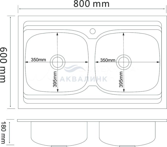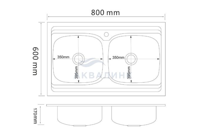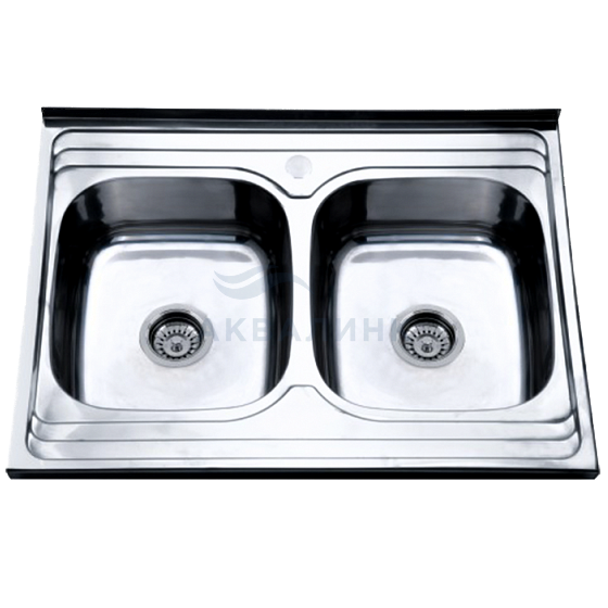 Мойка накладная 80х60 (0,6х170) РМС две чаши с сифоном
