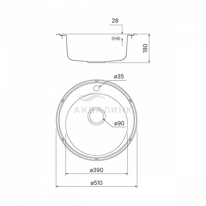 BAS51P0i77, Мойка, нерж. cталь, полир., D510, Basic, ID