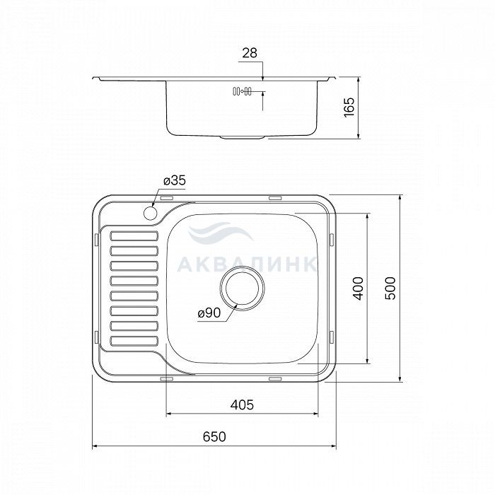 Мойка врезная 650х500 IDDIS Basic BAS65SRi77 чаша справа