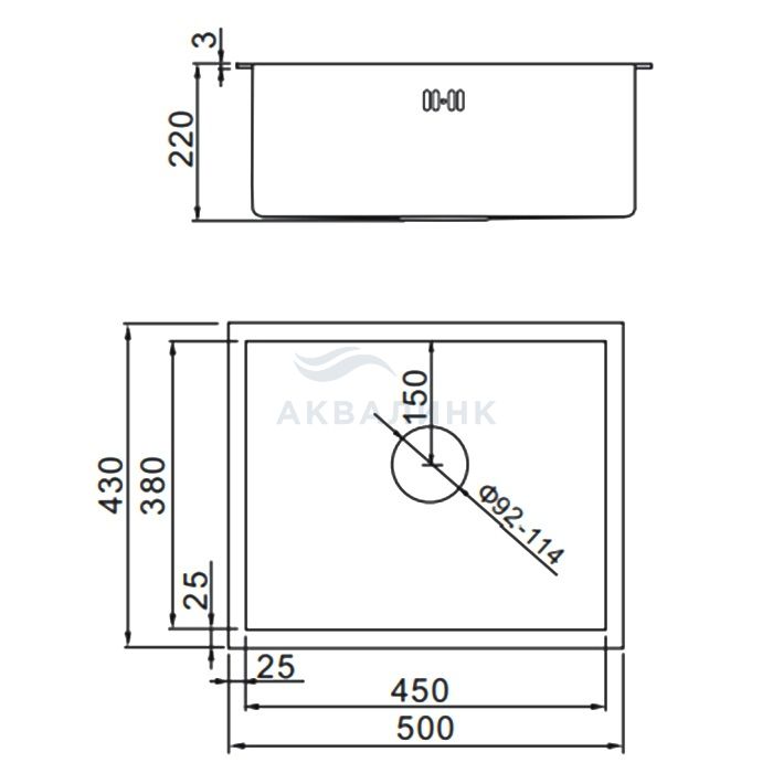 Мойка врезная D-49 (0,8х180) Ledeme L74949 матовая с сифоном