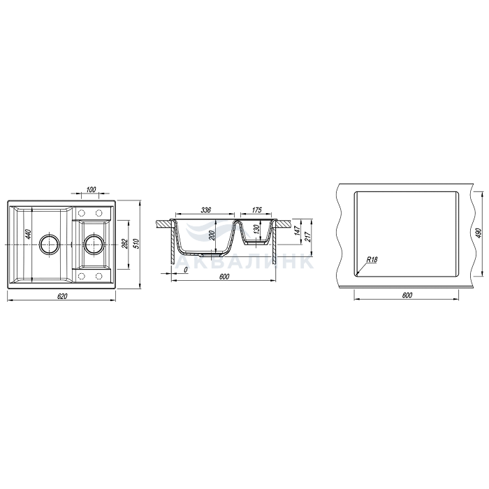 Мойка Dr. Gans Астра 620К 620х510х217 1 1/2 чаши