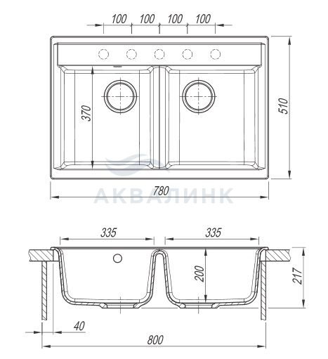 Мойка Dr. Gans Астра 780 780х510х217 две чаши