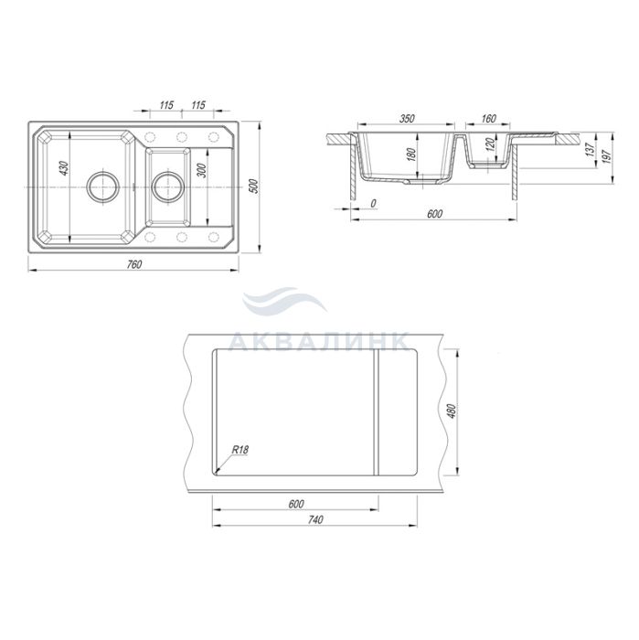 Мойка Dr. Gans Кардинал 760К 760х500х197 1 1/2 чаши