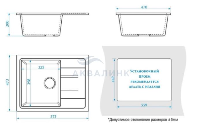 Мойка Santegro SZ150 без сифона 575х470 прямоугольная